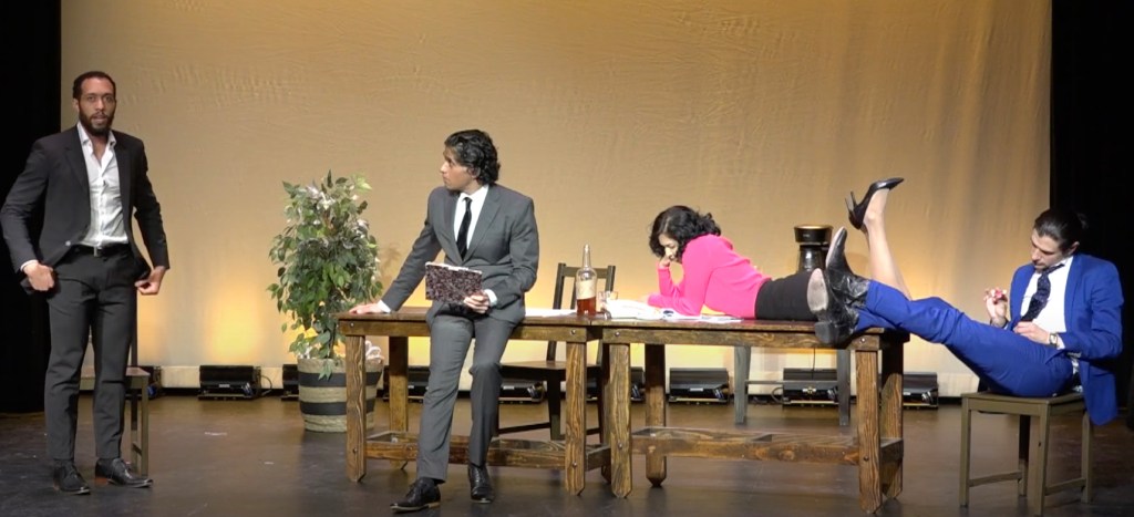 The cast features DazMann Still as the Everyman Teacher appropriately named Professor Jones, a black member of the theater department who who has somehow triggered one of his rich white students. Alyssa Diamond’s wildly inappropriate Dr. Ram is the first to confront him, though she won’t even tell him the nature of the offense or who filed the complaint. Filling in some of the blanks is Jonathan Reed Wexler as the over-the-top flamboyant Dr. Queeg. It falls to the questionable power figure Dr. Pane, portrayed by Anuj Parikh, to complete the increasingly ridiculous picture.