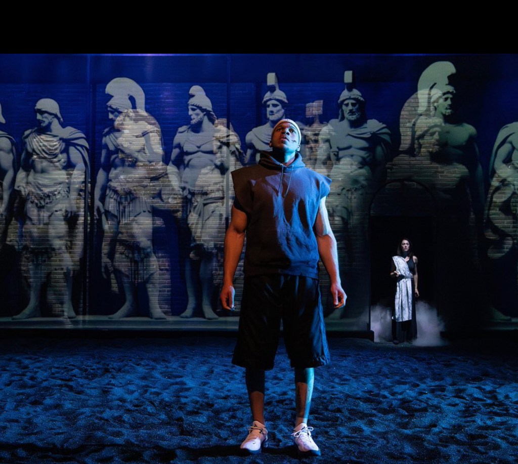The piece opens with a nod to the ancient tradition of oral storytelling as the players introduce themselves with their real names along with their god-selves. Working together, the performers weave a tapestry of poetry and dance as they tell the tale of Demi, the product of a particularly violent rape by Zeus: one of many abuses perpetrated by the King of the Gods against human women. Having won a wager with Sàngó, a fellow god of Thunder, Zeus took as his prize Modúpé, who almost instantly gives birth to a half-god child, Demi. His despair can make rivers rise and his rage can make it rain. But his real power manifests on the modern basketball court where every shot is a winner. Despite his many victories, his smoldering rage against his father always burns.