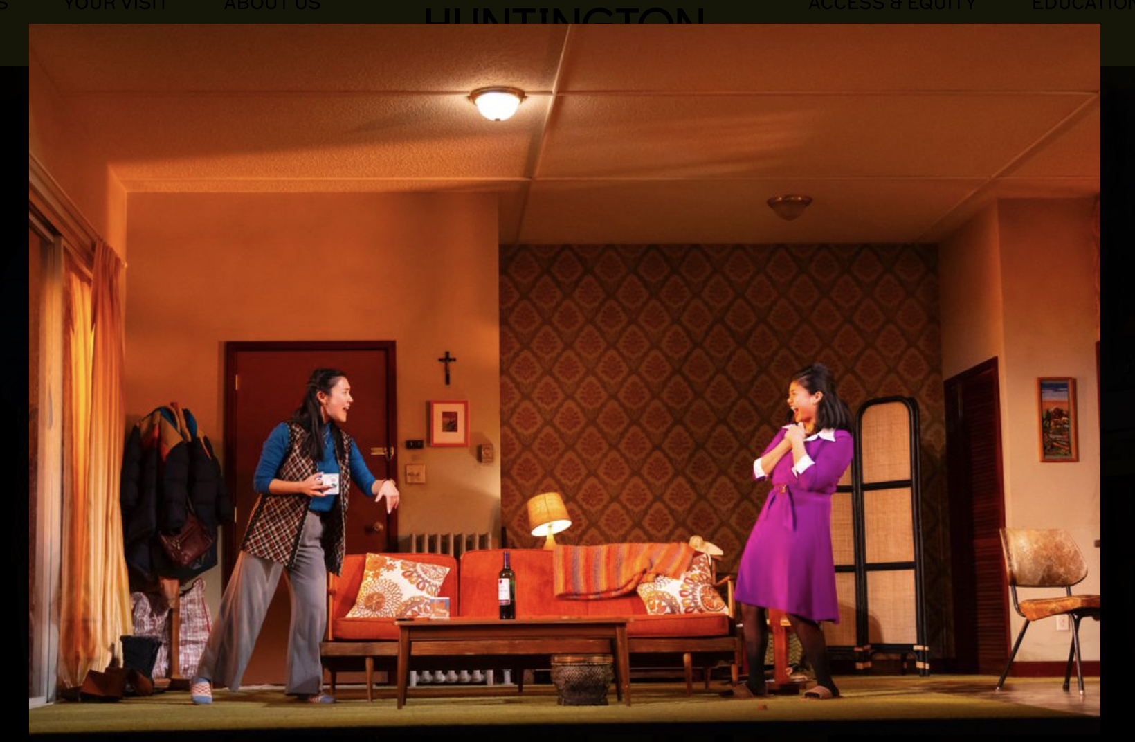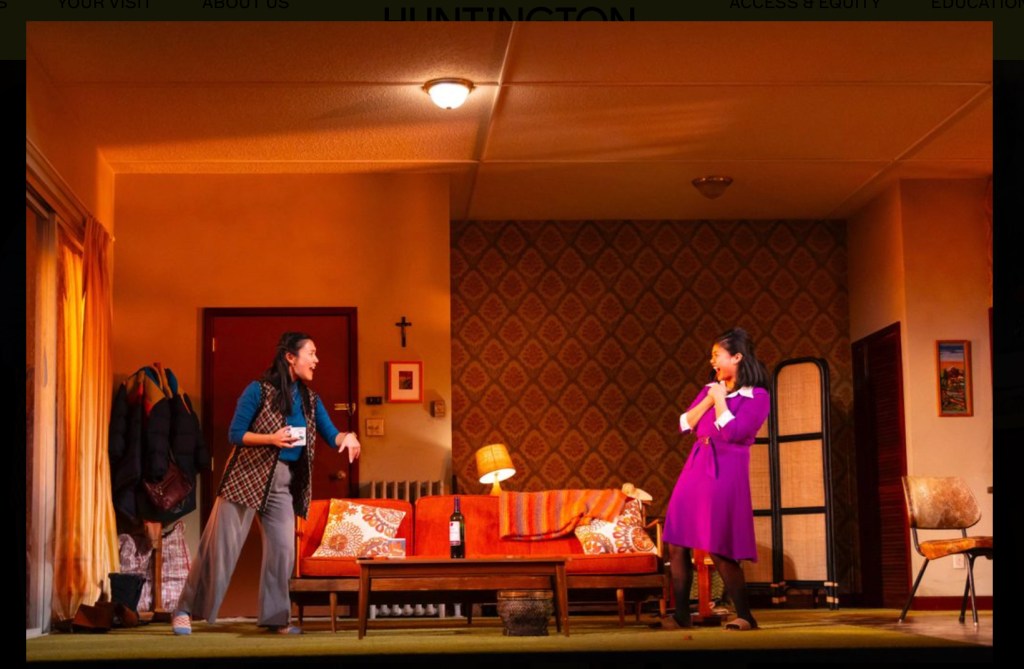 With an adept ear for dialogue, playwright Lloyd Suh treats us to a fabric of rich detail while keeping the conversation flowing. His examination of the cultural norms of 1970s America is both funny and touching. Luna and Jane’s exchange is at first realistically halting as they each employ their second language in search of common ground. Scenic and costume designer Junghyun Georgia Lee sets the perfect tone, literally putting the two women in a tiny box that encloses the stage. Luna’s apartment is dressed in wild and warm shades and the character herself appears in bright pink. Matching that colorful energy, Jenna Agbayani’s Luna is buzzy and overly familiar, high on adrenaline from her daring step of inviting Jane into her home. In contrast, Judy Song, making her North American stage debut, keeps Jane as fact-based as her earth and sky outfit would suggest. Only when she changes into Luna’s flowered “house clothes” does her imagination soar.